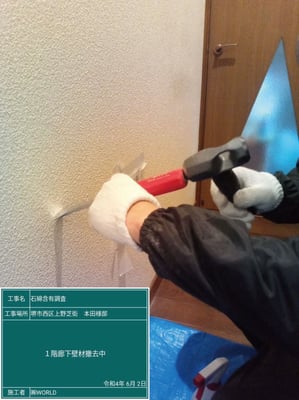 弊社では、建築物石綿含有建材調査者資格を持つスタッフが現地調査にて