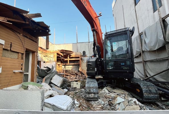 また、低コストを実現するために、作業の効率化、重機操作技術の向上を図り「解体は、単に建物を壊すだけではなく、次につなげるバトン渡し」と私たちは考えています。どんな小さな問題も起こらないよう、近隣の皆様への配慮を怠らず、いつも労わりの心、感謝の気持ち、謙虚な心を忘れることなく解体工事に取り組んでいます。
